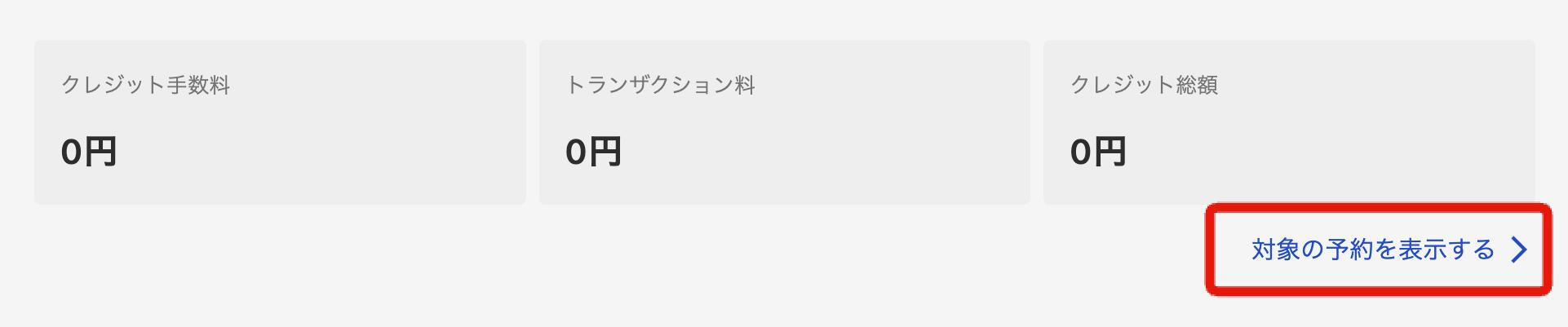 施設ごとの「クレジット手数料・トランザクション料・クレジット総額」の税抜き金額が表示されます